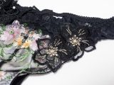 フロント部分は大人っぽい赤い花柄のレースに黒いリボン。黒の裏地がついているので透けちゃうこともないです👍サイドからバックは黒い紐のGストリング。このストリングの両サイドにはZ型のホックとアジャストがついているので、締め具合を自分で調整できるのもうれしいところ🎵