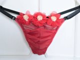 フロント部分は前回ご紹介したモデルよりも少し小さめでシャープな印象。刺繍入りレースになっていて、同色の裏地がついているのでおちんちんスケスケにはならないですが、レース部分のほうが大きいので、Vラインはレースがはっきり見えるようになってるのがいい感じです😉