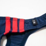 まずはフロント。かなり浅い作りなのでギリギリです。おちんちんは当然下向きで。ただ、ノーシームなのと生地がまったく伸びないので収めるのが難しく、玉がはみ出がち。しっかり抑え込んでぐいぐい押し込まないと無理ですねぇ。ちょっとでも勃起したらアウト🤔女性が穿いてもぴったりなんじゃないかな、というくらい。