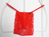 フロントはV字型になってて、おちんちん部分とバンドのレース部分で色が違います。おちんちん部分はフルシームでもっこりタイプはゆうの好きな形😍浅いのでおちんちんは下向きで。生地はよく伸びるStrike Skinです。透けないですけど少し薄めなので、形は見えちゃいますけどね🍌
